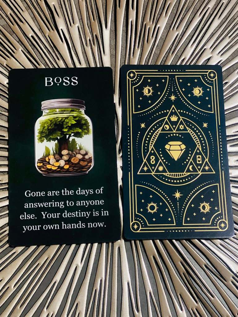 Itโs the confirmation that your earthly ambition (the BOSS card) is supported by spiritual architecture (the cosmic card).