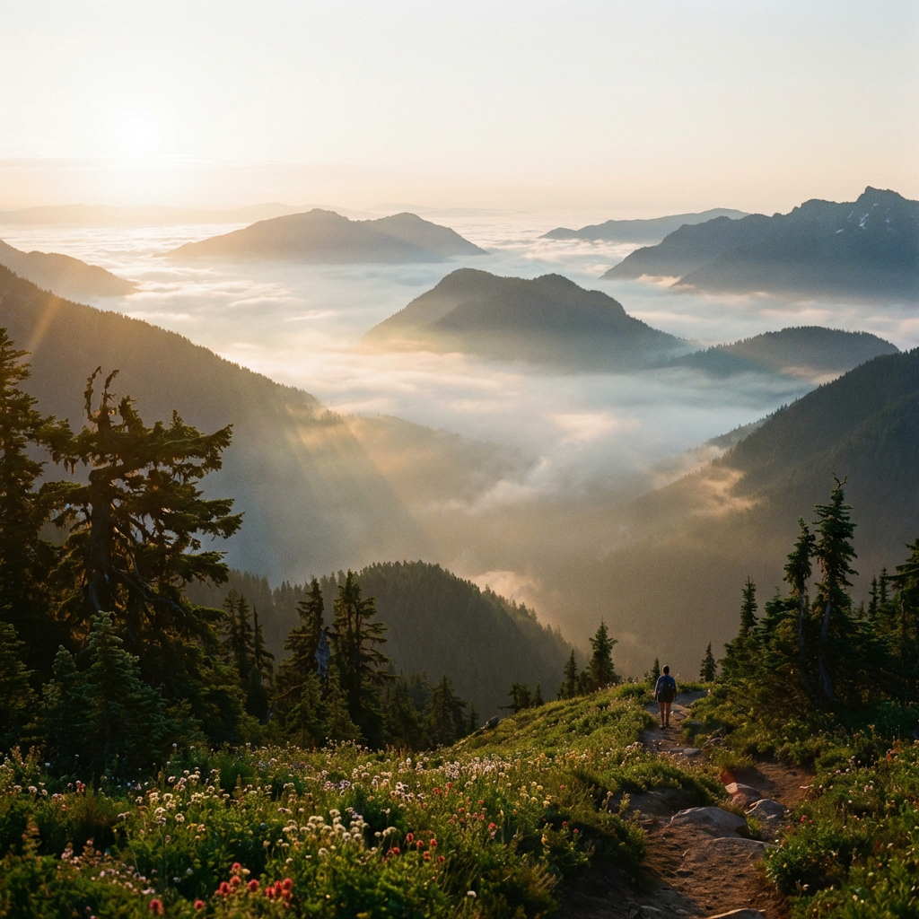 April 7, 2026 1024 × 1024 Serene mountain sunrise misty valleys